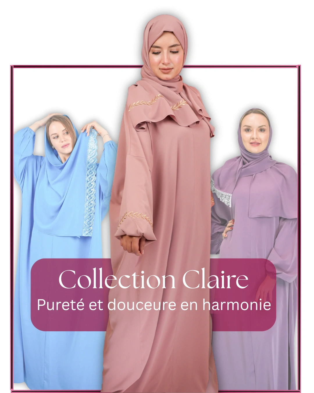 Chez Salaty, nous créons des tenues qui révèlent l’harmonie entre foi et raffinement. Chaque pièce est pensée pour sublimer votre dévouement spirituel tout en vous enveloppant de grâce et de confort.